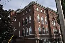 The city's high school was founded in 1850, and originally met at a site now occupied by the Dingley Building. In 1859 it moved to a building in Main Street.[3] In 1902, this school was built, becoming the first dedicated home to the high school. In 1931, the high school was moved to a new facility, and this became a junior high school, serving in that role until 1983.[2] The building was then converted to apartments. The school was named for Lyman G. Jordan, principal of the first high school for 15 years, Bates College professor of chemistry and biology, and member of the Lewiston school board.[4]