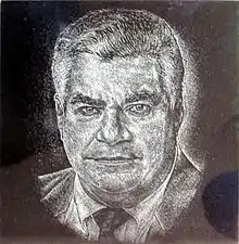![]() Hand-etched portrait over black granite | |