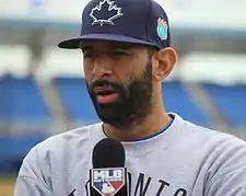 Bautista was then traded to the Blue Jays, in August 2008.[3] After making adjustments to his swing, he broke through with ten home runs in September 2009. Bautista was voted in the top ten in the AL Most Valuable Player Award four times, and is a leader or among the top ten in numerous offensive single-season and career categories in Blue Jays' franchise history.[4]