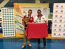 ![]() Dámaso holding the FIBA COCABA Championship trophy circa 2015. | |