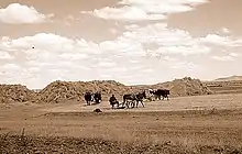 In 1910[30] Lamamié married a local girl, Sofía Alonso Moreno (1887-1970);[31] she came from the local bourgeoisie family.[32] They settled at Lamamié family estate in the Salamanca province, in-between Alba de Tormes[33] and Babilafuente.[34] Though Lamamié is often referred in historiography as “rico ganadero y terrateniente”[35] or “grande terrateniente”[36] it is not clear what the actual size of his estates was. Various sources claim that the couple had 9[37] to 11[38] children. Raised in the very religious ambience,[39] at least 6 of them joined religious orders;[40] some served in America,[41] some grew to local prominence[42] and one son was killed as a requeté chaplain in 1937.[43] The family heir Tomás Lamamié de Clairac Alonso did not become a public figure, though he held high executive functions in SEAT and other companies.[44] Neither the Lamamié de Clairac Delgado nor the Liaño Pacheco Lamamié[45] grandchildren grew to prominence; the best known, Pilar Lamamié de Clairac Delgado, is a pediatrician.[46]