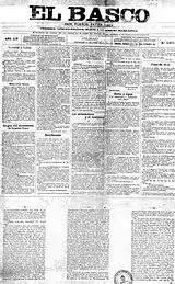 Because of his Eguizábal ancestors Liñán was related to the Vascongadas and especially to Bilbao, where his maternal great-grandfather came from. Having cultivated the family link in 1888 he was invited to join the editorial board of El Vasco,[57] the Traditionalist daily since 1884 issued in the Biscay capital.[58] Together with Enrique Olea he purchased the newspaper in 1889. Liñán retained political line of the newspaper and engaged in a number of heated political debates.[59] El Vasco represented also a firm regionalist line; since 1890 the daily appeared as El Basco.[60] Periodically Doña Marina ceded editorial duties to Miguel Ortigosa and Enrique de Olea.[61] Businesswise the enterprise turned to have been a challenging one; with the number of subscribers at 700-900, El Basco was producing annual deficit of some 10,000 ptas.[62] The uphill struggle continued until 1897, when Doña Marina withdrew from El Basco;[63] afterwards it turned into an anodyne newspaper. The resignation marked abdication on Carlist fuerista line in the province,[64] regretted very much by the claimant himself.[65]