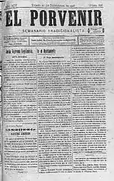 After leaving El Basco Doña Marina shifted his attention to San Sebastián, where in 1898 he launched a local daily El Correo de Guipúzcoa.[66] As its director[67] he maintained Traditionalist profile of the paper, in the early 20th century ridiculed by opponents as "fracasado periodiquero" and representative of die-hard despotic Carlism.[68] None of the sources consulted specifies whether Doña Marina was directing both El Basco and El Correo from Madrid or whether he lived in Bilbao and San Sebastián on the on and off basis; in case of the latter, he ceded editorial duties first to Daniel Aizpurúa and later to Román Oyarzun.[69] Like in Biscay, also in Gipuzkoa the editorial enterprise did not last longer than a decade; at unspecified time Doña Marina withdrew, and El Correo disappeared in the early-1910s.[70] Most authors do not associate him with any other periodical; one scholar, however, claims that in the late 1910s Doña Marina one way or another controlled a Toledo daily El Porvenir, a very ephemeral episode marked by attempt to champion a Mellista line.[71]