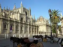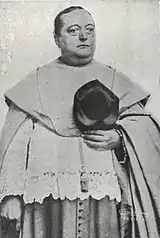 In the early 1890s Roca was already basking in local prestige as a great preacher.[27] However, for reasons which remain unclear[28] he decided to leave the islands and applied for the position of canon at the Seville cathedral. In 1892 he was nominated canonigo penitenciario,[29] and in 1893 he took over Canongía Magistral.[30] His first years in Andalusia were uneventful, as in the mid-1890s he was noted merely for regular sermons.[31] Things changed in 1899 when Roca gained nationwide recognition following publication of his pamphlet directed against teachings of the primate, cardinal Sancha.[32] Because it was wrongly assumed that the criticism was authorised by the Seville archbishop Spínola[33] it caused a scandal and widespread debate.[34] As a well-known personality he was then active in Catholic congresses staged in the early 1900s. Though he gained recognition bordering notoriety, Roca did not progress in terms of his ecclesiastical career, especially since in 1911 his new booklets triggered a negative response from the Vatican.[35] Apart from his role of lecturing canon he assumed only some new teaching jobs in the local seminary,[36] at Hispalense,[37] and at various private establishments.[38]