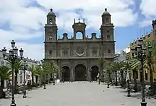 In Las Palmas Roca y Ponsa kept serving as lecturing canon by the cathedral and as catedrático by the local seminary. Another role he assumed was managing newly launched diocesan reviews.[16] He was gradually gaining recognition; in 1877 the Canary bishop José María Urquinaona nominated him head of the diocesan pilgrimage to Rome.[17] Roca was also assuming prestigious roles during local ceremonies.[18] His position in the Las Palmas hierarchy was enhanced with the 1879 arrival of the new bishop, José Proceso Pozuelo;[19] in 1881 Pozuelo nominated him to sort out the politically sensitive question of the local cemetery.[20] At the turn of the decades Roca launched a short-lived diocesan daily[21] and then a bi-weekly,[22] which he managed until 1888.[23] His militant articles aimed against the liberal regime cost him trial; in 1885 he was sentenced to living 3,5 years 25 km away from Las Palmas,[24] but it is not sure whether the sentence was enforced.[25] In 1890 Roca ascended to rectorship of Seminario de Canarias.[26]