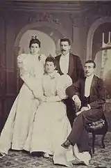 At unspecified time José Sánchez Marco married Soledad Doussinague Casares (1870-1943),[13] descendant to a petty bourgeoisie family; her father, Pedro Doussinague Adema, was related to a textile manufacturing business in the Gipuzkoan town of Laskurain.[14] The couple had five children,[15] who changed their name to Sánchez-Marco Doussinague;[16] two sons[17] and three daughters.[18] Known locally in Navarrese realm, none of them became a nationally recognized figure;[19] Antonio volunteered to the Carlist requeté during the Civil War;[20] though not a military, he commanded a platoon in Tercio María de las Nieves battalion.[21] Later on he served as concejal in the Pamplona ayuntamiento.[22] María became a nun.[23] José's grandson Carlos Sánchez-Marco Mendizabal is a historian[24] and the moving spirit behind Fundación Lebrel Blanco, dedicated to culture and history of the province;[25] another one, Javier Sánchez-Marco Mendizabal, made his name as an entrepreneur.[26]