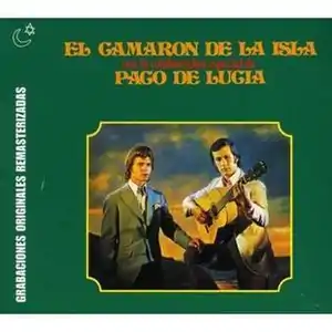 During his time at Tablao Torres Bermejas, he met Paco de Lucía, with whom he recorded nine albums between 1969 and 1977. The two toured extensively together during this period.[3] As Paco de Lucía became more occupied with solo concert commitments, Camarón worked with the flamenco guitarist Tomatito.