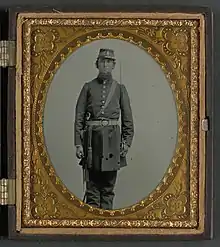 When the American Civil War broke out, the Spartan Rifles were integrated into the 5th South Carolina Infantry Regiment as Company K on April 13, 1861, and Walker would command the company for a year until he was transferred to the Palmetto Sharpshooters where he would be a lieutenant colonel on April 15, 1862.[3][4] He was then fully promoted to colonel on July 22 of the same year.[2] Walker was then a part of Robert E. Lee's Army of the Potomac as the main colonel of Micah Jenkins' brigade.[5] Walker would then serve at the Battle of South Mountain[5] and the Battle of Antietam.[6] Parham would then serve as a state representative of South Carolina in 1864 before surrendering around the end of the American Civil War.[2]