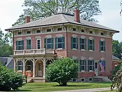 The Joseph Annin House is a two-story brick Italianate structure shaped like a cube. It is five bays across, with a central entrance portico. It has hip roof with matching interior chimney sand overhanging eaves supported by paired ornamental brackets. Between the brackets are small rectangular windows. Window openings on the primary facades are shuttered double sash with decorative wooden lintels above. A wooden barn/carriage house with a gabled roof and vertical board-and-batten siding sits behind the house.[2]