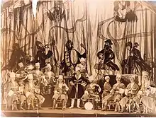 After The Dybbuk closed, Cherniavsky rewrote some of the material into a new vaudeville act which he variously called Joseph Cherniavsky's Yiddish-American Jazz Band, the Hasidic-American Jazz Band, etc.[7] The orchestra members would dress as Cossacks or Hasidim.[7] Cherniavsky's wife Lara, a pianist, was also involved in leading rehearsals and possibly coming up with some of the arrangements.[8] Famous klezmers who played in this orchestra included Naftule Brandwein, Dave Tarras and Shloimke Beckerman.[7] The act toured the United States for three years.[9] In 1924 his recordings for Pathé Records as the Cherniavsky Jewish Jazz Band were marketed as the first "Jewish Jazz Band" in the country.[10] Dave Tarras later said that the music had not really been Jazz, but just "nice theatre music".[11] Klezmer researcher Jeffrey Wollock describes the act's music as "neither jazz nor true klezmer, his arrangements were modernistic, theatrical treatments of Jewish content."[12] By 1925 the orchestra disbanded.[11]