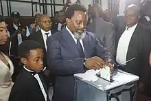 Kabila's term was due to expire on 20 December 2016, according to the terms of the constitution adopted in 2006. Officials suggested that elections would be held in November 2016, but on 29 September 2016, the nation's electoral authority announced that the election would not be held until early 2018. Talk focused on the need for a census before holding elections.[5] In August 2018, Kabila announced that he would step down and not seek reelection in the December 2018 general election.[6] He was succeeded by Félix Tshisekedi in the country's first peaceful transition of power since independence.