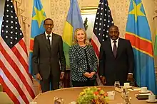 Partially in response to the delayed election, the United States issued sanctions against two members of Kabila's inner circle, John Numbi and Gabriel Amisi Kumba, on 28 September. These actions were seen as a warning to President Kabila to respect his country's constitution.[35]