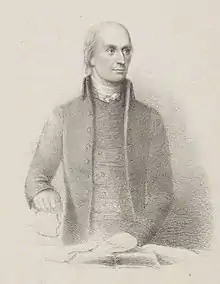 After four years' schooling, Kinghorn was taken on trial as apprentice to watch- and clock-making at Hull in 1779, but in March 1781 became a clerk in the white-lead works at Elswick, Northumberland of Walker Fishwick & Co.[1][2] On 20 April 1783 he was baptised by his father at Burton-Bishop, and considered entering the ministry. He made the acquaintance of Robert Hall, and had thoughts of joining him at the University of Aberdeen, but on 20 August 1784 he entered Bristol Baptist Academy, under Caleb Evans. At Bristol, Kinghorn developed friendships with James Hinton (1761–1823), Anthony Robinson (1762–1827, his roommate), and Samuel Pearce.