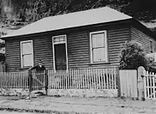 When Lyons was four years old, his father moved the family from Stanley to Ulverstone, where he opened a combined bakery and butcher's shop.[6] In 1887, he lost the family's savings betting on the Melbourne Cup, driving them into poverty.[7] He had to sell the shop and resort to working as an unskilled labourer; his oldest children took part-time jobs to support the family. Lyons began working at the age of nine, as a printer's messenger boy. By the age of twelve, he was "cutting scrub" (clearing land) for local farmers.[8] Lyons had begun his education at the Ulverstone State School in 1885, before switching to the local Catholic school in 1887.[9] His early years of schooling were interrupted by his family's financial difficulties, and his attendance was sometimes irregular, though this was not uncommon in small rural schools at the time. In 1891, he moved back to Stanley to live with his aunts, Etty and Mary Carroll, and was enrolled at the Stanley State School.[8]