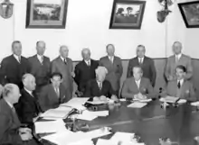 At the outset, the UAP did not renew the traditional non-Labor Coalition with the Country Party, then led by Sir Earle Page. While the two parties ran separate House campaigns, they presented a joint ticket for the Senate. The massive swing to the UAP left it only four seats short of a majority in its own right. The five MPs elected for the Emergency Committee of South Australia, which stood for the UAP and Country Party in South Australia, joined the UAP party room, giving the UAP a bare majority of two seats. While Lyons was still willing to take the Country Party into his government (which would have commanded over 70 percent of the seats), negotiations stalled, and Lyons decided to govern alone.[37] The new government was sworn in January 1932. Lyons became the third former federal or state Labor leader (after Hughes and Joseph Cook) to become a non-Labor Prime Minister.