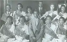 ![]() J.N. Crooms posing with the Crooms Academy Class of 1929, on the front steps of his home at 812 South Sanford Ave. | |