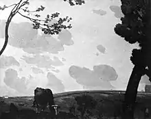 He attained early notoriety as a landscape painter for works influenced by Japanese art, and often featuring birds and animals.[7] Among these was On the Valley, exhibited at PAFA in 1916: