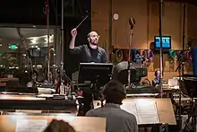 ![]() Trapanese conducting his score for Disney's Lady and the Tramp at Sony's Barbra Streisand Scoring Stage | |