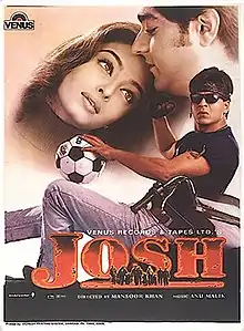 Josh (transl. Zeal; Hindi pronunciation: [dʒoːʃ]) is a 2000 Indian Hindi-language romantic action film directed and co-written by Mansoor Khan. The film stars Shah Rukh Khan, Aishwarya Rai, Chandrachur Singh and Sharad Kapoor. The film, which is primarily in Hindi with occasional Konkani,[3] was set and filmed in Goa.[4] The film is set in the year 1980, amidst the backdrop of real estate deals and communal violence in Goa.[5]