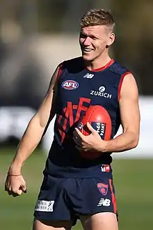 Wagner was drafted by the Melbourne Football Club with their first selection and sixth overall in the 2016 rookie draft.[8] He made his debut in the five-point loss to North Melbourne in round 3, 2016 at Blundstone Arena, where he recorded eight-disposals.[9] After a relatively quiet debut, he recorded twenty-four disposals, six marks, five tackles and two contested marks, at seventy-one percent disposal efficiency in his second match; he polled in the Channel 7 and The Age player of the year votes,[10] and he was named as one of Melbourne's best players by AFL Media and The Age.[11][12] He played a consecutive eleven matches before succumbing to a knee injury and he missed the round 15 and 16 matches against Adelaide at the Melbourne Cricket Ground and Fremantle at TIO Stadium respectively.[13][14] He was recalled to the senior side for the round 17 match against St Kilda at Etihad Stadium.[15] He played the next two games before being rested for the round 20 match against Hawthorn at the Melbourne Cricket Ground.[16] He played the remainder of the season in the Victorian Football League (VFL) for Melbourne's affiliate team, the Casey Scorpions,[17] finishing with fourteen AFL matches for the season and a fourteenth place finish in Melbourne's best and fairest count.[18] After spending the season on the rookie list, he was promoted to the senior list in October along with a two-year contract.[19]
