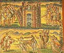 Joshua (HWV 64) is an oratorio by George Frideric Handel. It was composed in a month, between 19 July 1747 and 19 August 1747, six months before the beginning of the oratorio season, and is Handel's fourth oratorio based on a libretto by Thomas Morell.[1] The oratorio premiered on 9 March 1748 at the Covent Garden Theatre, London. Joshua is based on the Biblical story of Joshua as the leader of the ancient Israelites. The story follows the Israelites from their passage over the Jordan River into Caanan and through the Battle of Jericho. The work also includes a love story elaborated from a few hints in the Biblical narrative between Caleb's daughter Achsah and Othniel, a young soldier.[2]