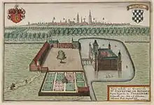 Josse van Aertrycke was the firstborn son of Jan van Aertrycke d. 1468, a notable and orator of the prévôté of Bruges, and his wife, Barbara Ferteyns. The van Aertryckes were an old family of poorters and burgomasters of Bruges, and feudal lords of Tillegem castle.[4][1] Josse's paternal grand-father, Jacob (d. 3 September 1405), participated in the great tournament of Bruges under the n. 71 in 1393, and so did his ancestor, Philippe I, (Jacob's grand-father) and the latter's brother, Lodewijk,[5] both in 1391, under the numbers 35 and 36, respectively.[6][7][1]