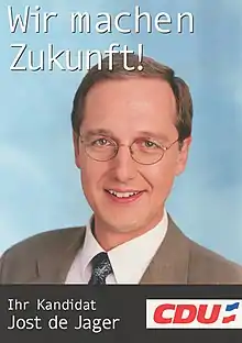 Jost de Jager (born 07.03.1965[1]) is a German Business Consultant,[2] Politician and former Schleswig-Holstein Minister of Science, Economic Affairs and Transport.[1]
