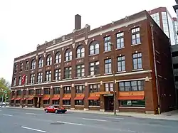 The Journal-Gazette Building is a historic commercial building located in downtown Fort Wayne, Indiana. It was designed by noted Fort Wayne architect Charles R. Weatherhogg and built in 1927–1928. It is a four-story, 13 bay, red brick building with limestone trim in the Chicago Style. The seven central bays feature round arch window openings. For many years the building housed The Journal Gazette newspaper plant.[2]: 2, 4