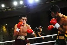 Juan Miguel Elorde (born 25 October 1986) is a Filipino boxer. He is the reigning WBO Asia Pacific super bantamweight champion[1] and goes undefeated since he won the championship title in 2015. He is currently ranked no. 4 WBO Super Bantamweight division.[1] He is managed and promoted by his father Johnny Elorde. Currently trained by Toto Laurente of Palompon City, Leyte.