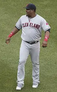 Just before the start of spring training 2016, Uribe signed a one-year, $4 million deal with the Cleveland Indians.[66] On June 12, 2016 in Anaheim, Uribe had to be carted off the field after being hit in the crotch by a ground ball which came off the bat of Mike Trout at 106 miles per hour (171 km/h).[67] He was later diagnosed with a testicular contusion.[68] He was designated for assignment on August 1, 2016 and released on August 5.