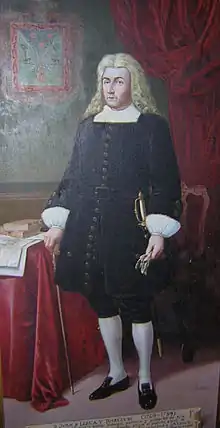 Among other duties of public official, Juan de Lezica y Torrezuri was the commander of "La Atrevida", a militia of the Cuerpo de Blandengues de la Frontera de Buenos Aires, in charge of punitive expeditions against infidel Indians.[4] He also served as mayor of 1st vote of Buenos Aires and of La Paz.[5] In 1755, he founded the town of Luján.[6]