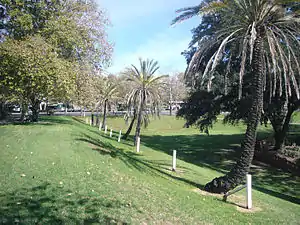 The Jubilee Exhibition Railway was a railway spur in Adelaide, South Australia. It was built in 1887 from where the Adelaide station currently is to the Jubilee Exhibition Building which stood near Frome Road on what is now part of the University of Adelaide. The line used an existing tunnel under King William Road which had been built in 1854 for horses and cattle to cross the road without disrupting traffic.[1][2] The tunnel is likely the origin of rumours about rail tunnels located under the city of Adelaide.[3] Much of the land where the line once ran has been reused as parts of Adelaide University and the Adelaide Festival Centre. There were no stations built. No known evidence of the line remains today.