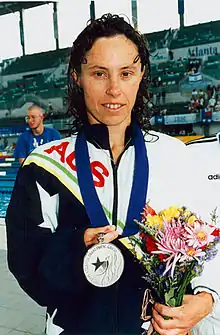 ![]() Judith Young at the 1996 Atlanta Paralympics showing her silver medal won in the 100 m butterfly | |||||||||||||||||||||||||||||||||||||||||||||||||||||||||||||||||||||||||||||
