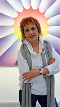 Judy Chicago (born Judith Sylvia Cohen; July 20, 1939) is an American feminist artist, art educator,[3] and writer known for her large collaborative art installation pieces about birth and creation images, which examine the role of women in history and culture. During the 1970s, Chicago founded the first feminist art program in the United States at California State University Fresno (formerly Fresno State College) and acted as a catalyst for feminist art and art education.[4] Her inclusion in hundreds of publications in various areas of the world showcases her influence in the worldwide art community. Additionally, many of her books have been published in other countries, making her work more accessible to international readers. Chicago's work incorporates a variety of artistic skills, such as needlework, counterbalanced with skills such as welding and pyrotechnics. Chicago's most well known work is The Dinner Party, which is permanently installed in the Elizabeth A. Sackler Center for Feminist Art at the Brooklyn Museum. The Dinner Party celebrates the accomplishments of women throughout history and is widely regarded as the first epic feminist artwork. Other notable art projects by Chicago include International Honor Quilt, The Birth Project,[5] Powerplay,[6] and The Holocaust Project.[7] She is represented by Jessica Silverman gallery and Salon 94 gallery.[8]