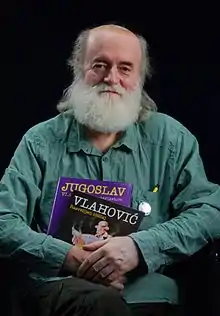 Jugoslav Vlahović (Serbian Cyrillic: Југослав Влаховић, born 1949) is a Serbian artist, illustrator, photographer and a former rock musician. Vlahović is known for his work on album covers. He is also known as a former member of the rock band Porodična Manufaktura Crnog Hleba.