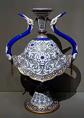 - " Vase à quatre lobes ", d'une paire, fond bleu, riche décor en or de style persan