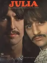 "Julia" is a song by the English rock band the Beatles from their 1968 double album The Beatles (also known as "the White Album"). It is performed as a solo piece by John Lennon. The song was written by Lennon (though credited to Lennon–McCartney) about his mother Julia Lennon, who died in 1958 at age 44.