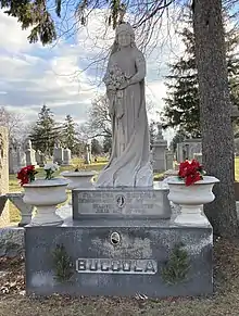 Some suggest friction existed between Mrs. Buccola and Julia's husband, Matthew, who remarried around the time of the disinterment; it's notable that Julia's married name appears nowhere on the monument, nor that of her stillborn child (though the name of her mother, who is buried nearby, appears twice).[1]