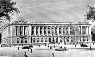 Between 1903 and his hiring by Horace Trumbauer in 1906, Abele traveled throughout Europe.[13] His descendants contend that he studied at the École des Beaux-Arts in Paris during his stay.[14] But Sandra L. Tatman, co-author of The Biographical Dictionary of Philadelphia Architects, 1700-1930, could find no record of his having been enrolled at the École.[15] She allows that he may have been permitted to informally sit in on the school's atelier. She also notes that Abele listed travel to France, Italy, England, Germany, Switzerland, and Spain on his membership application to the American Institute of Architects (AIA), but not study at the École des Beaux-Arts.