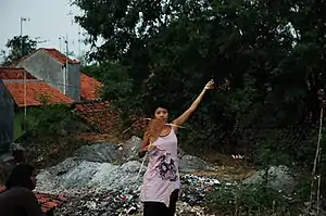 Collaboration was a significant aspect of Juliana's practice, whether with other artists, collectives, or communities, she described herself as being better able to "push [her] boundaries" when working with others.[11] This would manifest in her many collaborations with other artists and with collectives and groups such as The Artists Village, Plastique Kinetic Worms, and with communities in Jatiwangi. Australian artists Karee Dahl and Colin G Reaney are noted frequent collaborators of Juliana, performing alongside her at previous projects such as Traffic Space at Para Site, Hong Kong in 2001, The houseWORK Project at the Alliance Française de Singapour, Singapore in 2003, the CP Open Biennale, Jakarta in 2003, and TAV's Artists Investigating Monuments series in 2004/5.[3][14]