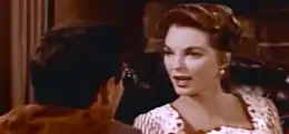 She made her film debut while still in high school, appearing under the name Julie London in Nabonga in 1944. She later starred in the 1947 film The Red House with Edward G. Robinson.[13] After a series of uncredited roles, she signed a contract with Warner Bros. Pictures, appearing in the war film Task Force (1949)[14] and the Western Return of the Frontiersman (1950).[15] She was cast in the lead role of Pat Boyd in the William Castle-directed The Fat Man (1951).[16] London completed shooting the film in August 1950.[17] After Warner Bros. dropped her contract,[15] London was offered a contract with Universal Pictures based on the role, but turned it down, opting instead to focus on her marriage to actor Jack Webb.[17]