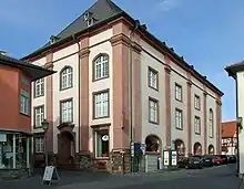 In 1886,[4] Julius Neubronner took over the pharmacy in Kronberg from his father. In 1887 he bought an important historical building known as Streitkirche ('dispute church'). Planned as a catholic church in the Protestant town of Kronberg, but never inaugurated, it had been the object of a notable conflict.[7][8] After the necessary modifications (the building had previously been used as an inn), family and pharmacy could move into the building in 1891.[4]