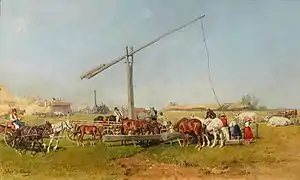 Horses watering by a Well, oil on panel.