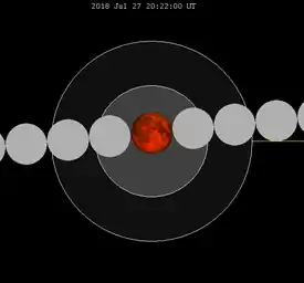 A partial lunar eclipse occurred on the 16 and 17 July 2019. The Moon was covered 65.31% by the Earth's umbral shadow at maximum eclipse.