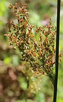 Juncus continuus is a plant found in many parts of Australia. Often growing on sandy, moist soils, near fresh water. The specific epithet refers to the continuous pith within the stems. Basal leaves are reduced to sheaths, coloured yellow/green.[1][2]
