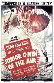 Junior G-Men of the Air is a 1942 Universal film serial starring the Dead End Kids and the Little Tough Guys.[1] A group of youthful flying enthusiasts join the "Junior G-Men" to help break up a planned attack on the United States.[2]