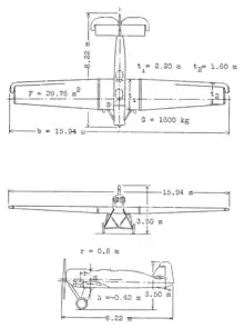 - Wing area: 29.8 m2 (321 sq ft)
