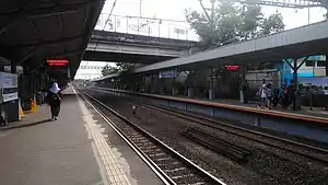 Jurangmangu Station (JMG) is a class III railway station located in Sawah Lama, Ciputat, South Tangerang. The station is located at the elevation of +25 metres above sea level, is included in the Operation Area I Jakarta. Even though it is called Jurangmangu, this station is not located in Jurangmangu Village, Pondok Aren District, but is located in the south of Jurangmangu village itself.