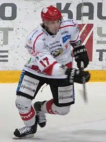 ![]() Finnish ice hockey forward Jussi Tapio playing for Vaasa Sport in a Finnish SM-liiga relegation game in March, 2012. | |||