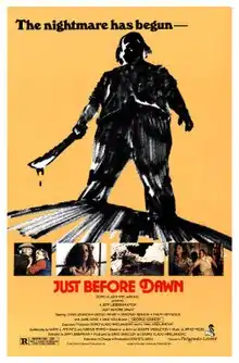 Universal Pictures initially expressed interest in acquiring the film for distribution, but eventually backed out.[4] Instead, the film was distributed by Picturmedia, a small independent company.[4] Just Before Dawn was given a regional theatrical release in the United States, beginning on November 27, 1981, screening in Miami.[2] It was also shown in several other nearby Florida cities the following week, including Fort Lauderdale and Palm Beach.[9] It was released in Kingsport, Tennessee on December 11, 1981.[10] The film was showing in Philadelphia, Pennsylvania the following year, beginning October 8, 1982.[11]